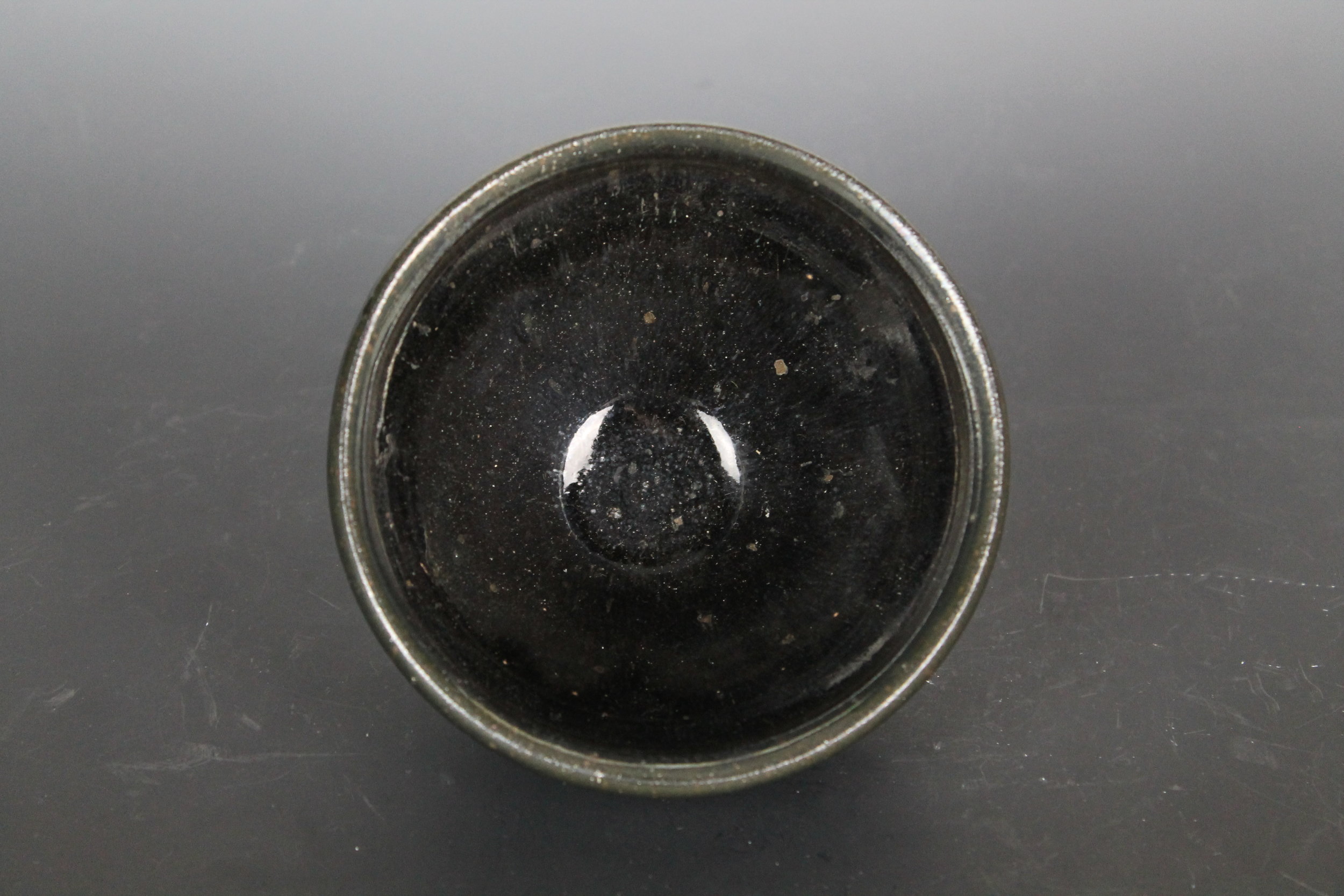 此藏品特色:建窑天目茶盏,敞口,深腹,腹下内收,短圈足。碗表施黑釉,施釉不过足。